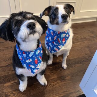 Our rescue puppies love their Buddy Bleu gear! They were perfect for the July 4th festivities with their firecracker bandanas. The Buddy Bleu portable water carrier is amazing for our hikes. Lightweight and so clever how it dispenses their water into the attached bowl. Plus with their Buddy Bleu leash poop bag attachment we are ready for every adventure!